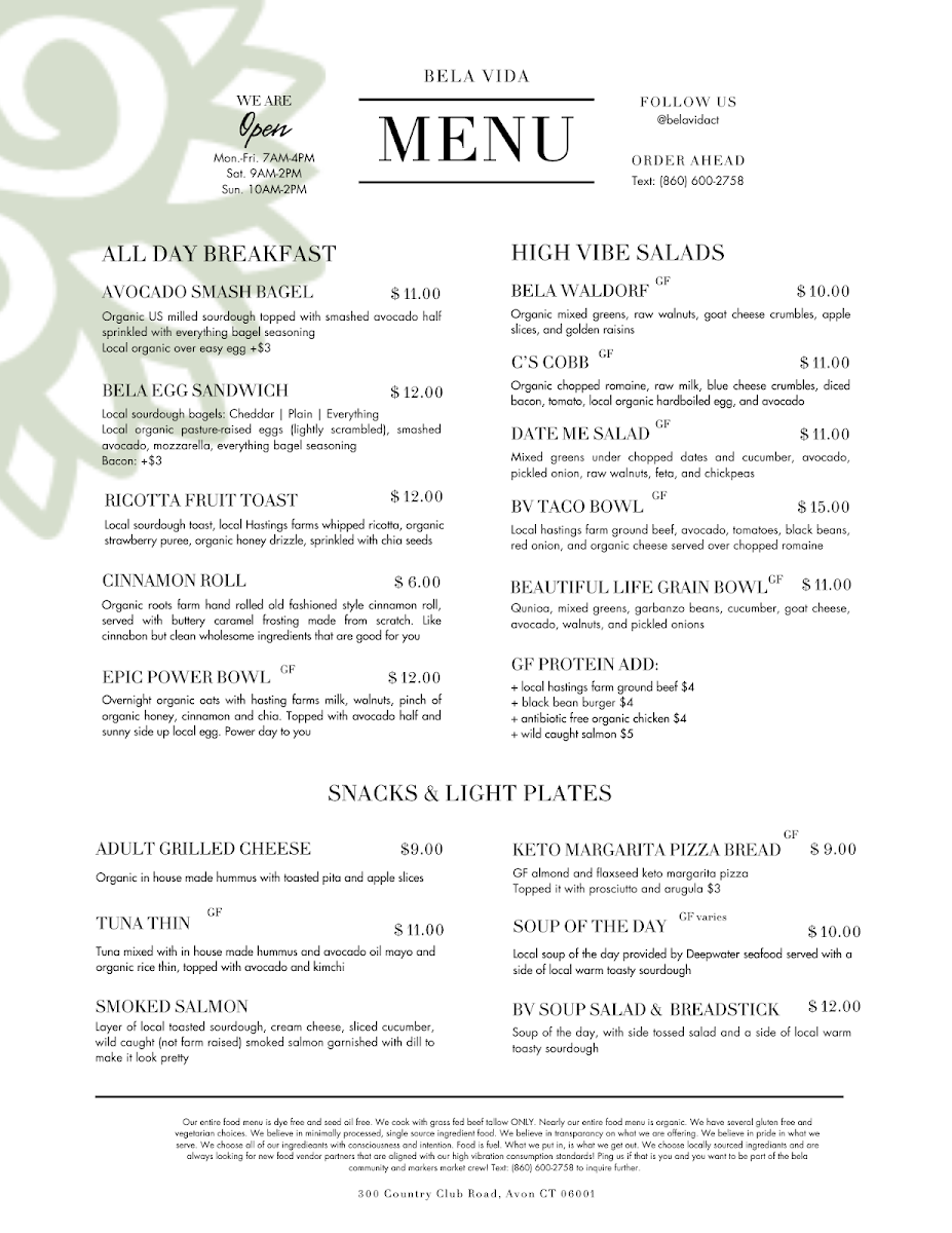 Welcome to Bela Vida, a vibrant cafe nestled at 300 Country Club Rd, Avon, CT 06001. This delightful spot is more than just a cafe; it's a sanctuary of wellness and positivity where every sip and every bite is made with care and quality ingredients.
